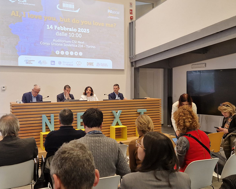 All’iniziativa, tappa piemontese del decennale di PA social e organizzata proprio da PA Social, insieme con CSI Piemonte, Unioncamere Piemonte e moderata dalla giornalista e coordinatrice PA Social Piemonte - Valle d’Aosta, Annalisa D’Errico, si è parlato di Intelligenza Artificiale e delle nuove frontiere della comunicazione pubblica e digitale. Oltre al Presidente Formez sono intervenuti anche Pietro Pacini, Direttore Generale CSI Piemonte, Marco Porcedda, assessore alla Sicurezza, sistemi Informativi e cybersecurity Città di Torino, Francesco Di Costanzo, Presidente PA Social e Fondazione Italia digitale, Sandro Giorgetti, Presidente Osservatorio digitale, Anna Cavallo, Direttrice Trasformazione digitale CSI Piemonte, Don Luca Peyron, professore Apostolato digitale - Università Cattolica e Luna Bianchi, CEO & Co-founder Immanence.