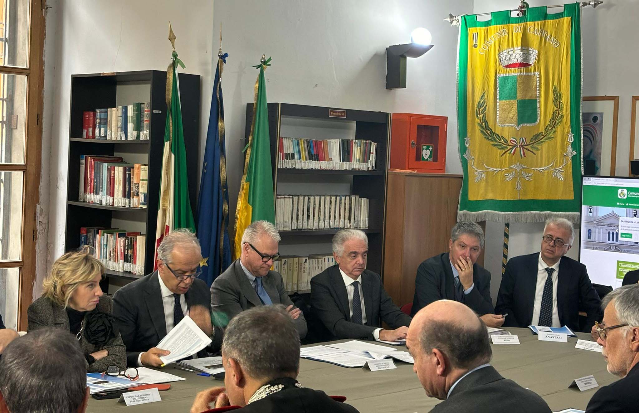 Il ministro per la Pubblica amministrazione, Paolo Zangrillo, e il ministro dell’Interno, Matteo Piantedosi, si sono recati oggi, a Caivano, dove hanno illustrato alla stampa il programma degli interventi per incrementare la capacità tecnica ed operativa del Comune campano. Con loro, negli spazi della biblioteca comunale al Castello feudale, erano presenti il Capo dipartimento della Funzione pubblica, Marcello Fiori, il Presidente di Formez, Giovanni Anastasi, il commissario straordinario per il risanamento e la riqualificazione di Caivano, Fabio Ciciliano, e i componenti della Commissione straordinaria che, a seguito del commissariamento, portano avanti la gestione delle attività amministrative del Comune. Presenti all’iniziativa anche il sindaco della Città metropolitana di Napoli, Gaetano Manfredi, il questore di Napoli, Maurizio Agricola, e il prefetto di Napoli, Michele Di Bari.