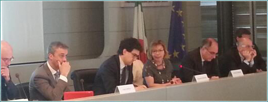 da sinistra: Gianni Dominici (Forum PA), Paolo Coppola (Camera dei Deputati), Alessandro Fusacchia (MIUR), Germana Panzironi (MISE), Carlo Flamment (Formez PA), Roberto Moriondo (delegato Regioni)