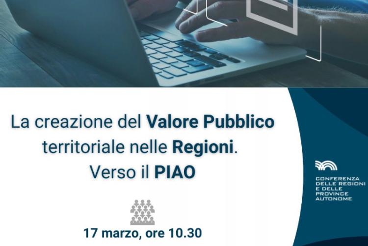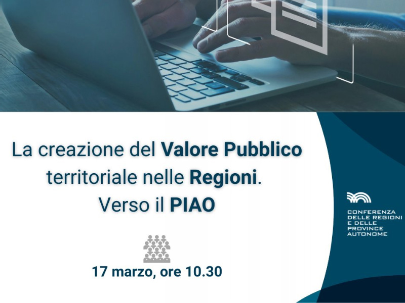 Il 17 marzo si terrà presso la Conferenza delle Regioni e delle Province Autonome, l’incontro conclusivo del laboratorio La creazione del Valore Pubblico territoriale nelle Regioni. Verso il PIAO, l’ultima tappa di un percorso di 11 mesi che ha consentito di entrare in 17 Regioni e nelle PA di Trento e Bolzano per accompagnarle nel processo di predisposizione del PIAO (Piano Integrato di Attività e di Organizzazione), attraverso la sperimentazione di un modello partecipativo di pianificazione strategica del Valore Pubblico territoriale e di programmazione operativa.