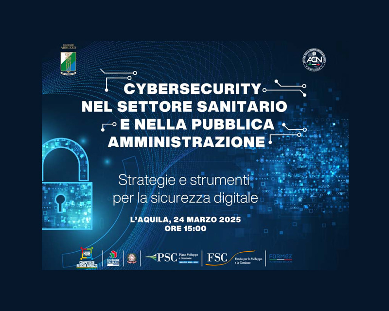 La giornata, che vedrà anche l’intervento del Presidente della Regione Abruzzo, Marco Marsilio, sarà aperta dai saluti istituzionali del sindaco de L’Aquila Pierluigi Biondi e del Presidente del Consiglio regionale dell’Abruzzo, Lorenzo Sospiri. La prima parte, moderata Stefano Dascoli, giornalista de ‘Il Messaggero’, sarà dedicata ad un panel istituzionale in cui interverranno Nunzia Ciardi, vicedirettore generale dell'Agenzia per la Cybersicurezza nazionale, Nicoletta Verì, assessore regionale alle Politiche della Salute ed Emanuela Grimaldi, Direttore generale del Dipartimento Sanità della regione Abruzzo. La seconda parte sarà dedicata ad un panel tecnico, moderato da Alessandro Misson, esperto Formez, nella quale interverranno Riccardo Urbani, esperto tecnico del Presidente della Regione Abruzzo in materia di digitalizzazione, innovazione tecnologica e cybersicurezza, Gianluca Galasso, Direttore del servizio Operazioni/CSIRT Italia dell’Agenzia perla Cybersicurezza Nazionale, Patrizia Consolo, Direttore Formez Capacity building per i territori e Luciano Cococcia, Direttore servizio informatico Regione Abruzzo.