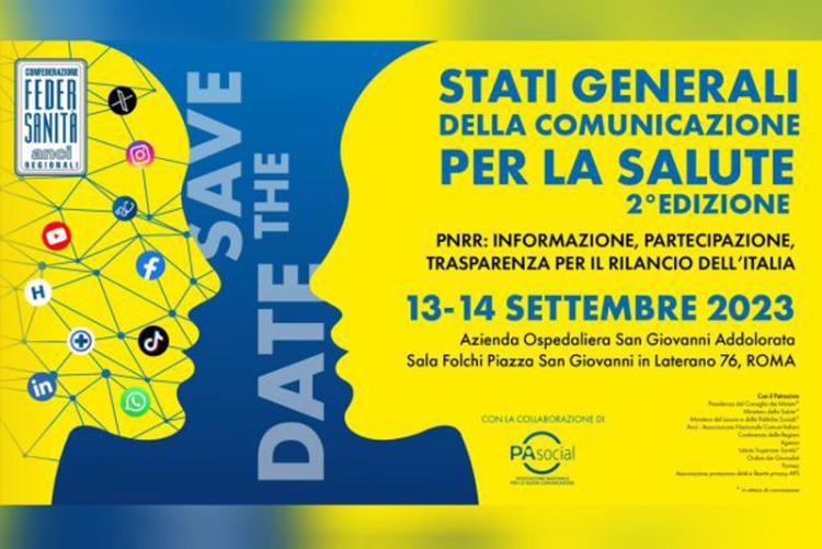 Si terrà il 13 e il 14 settembre a Roma, presso l’Azienda Ospedaliera San Giovanni Addolorata, la seconda edizione degli Stati Generali della Comunicazione per la salute - PNRR: informazione, partecipazione, trasparenza per il rilancio dell’Italia. L’evento è promosso da Federsanità in collaborazione con l’associazione PA Social.