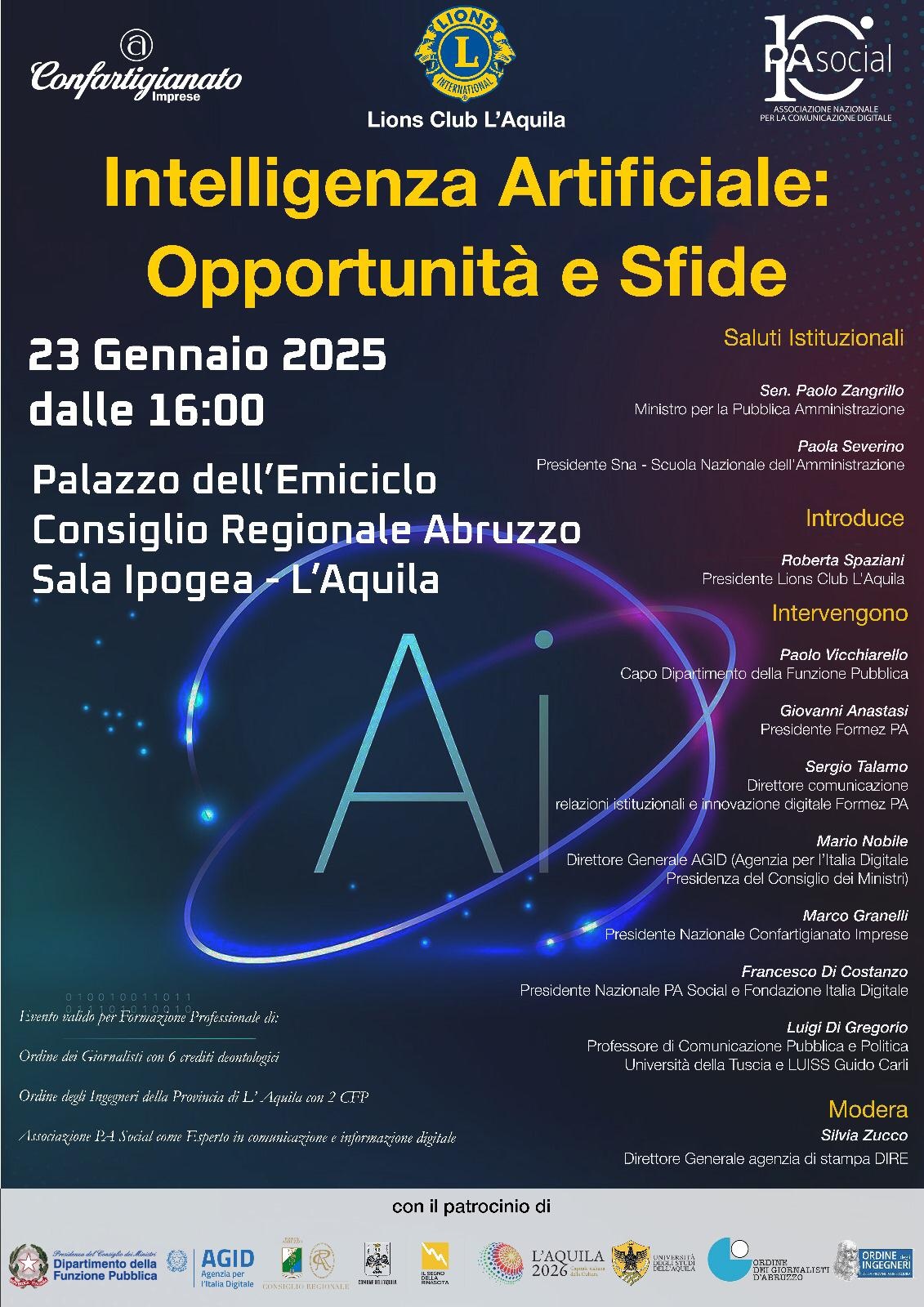 All’evento, organizzato da Confartigianato, Lions Club L’Aquila e PA Social, interverranno, tra gli altri, il Presidente di Formez, Giovanni Anastasi, e Sergio Talamo, Direttore dell’area Comunicazione, Relazioni istituzionali e Innovazione digitale.