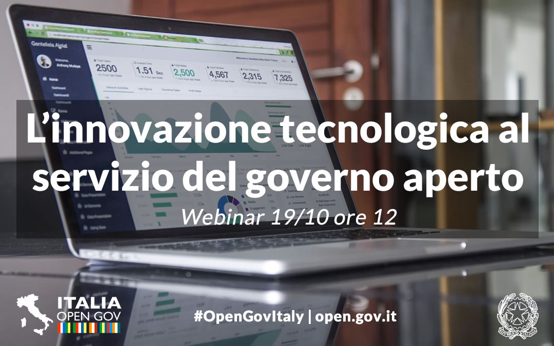 Il 19 Ottobre 2021 alle ore 12:00 si tiene il webinar “L'innovazione tecnologica al servizio del governo aperto”. Il webinar fa parte del ciclo di appuntamenti promossi dal Dipartimento della Funzione Pubblica e organizzati da Formez PA, nel contesto della partecipazione italiana a Open Government Partnership, di cui approfondisce uno dei temi al centro del prossimo Piano d’azione nazionale 2021 - 2023 OGP, nel contesto del Piano Nazionale di Ripresa e Resilienza.