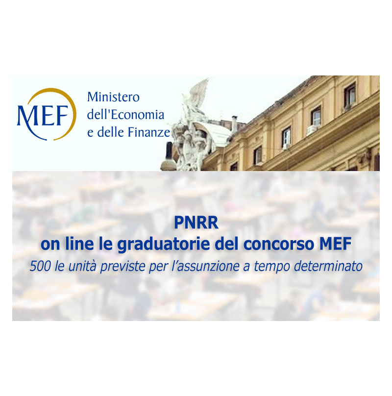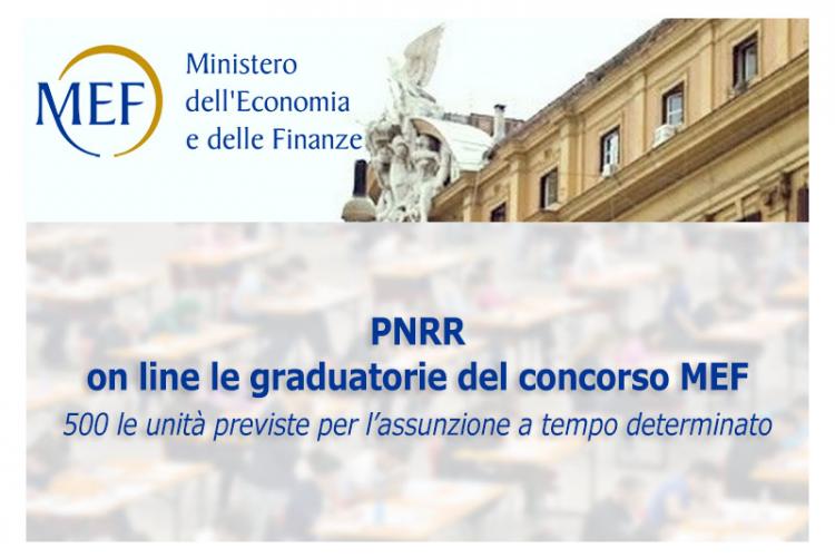 Sono state pubblicate le graduatorie finali di merito, validate dalla Commissione Ripam, relative al bando di Concorso pubblico MEF per il reclutamento di 500 unità di personale non dirigenziale a tempo determinato da assegnare al MEF e alle amministrazioni titolari di interventi previsti nel PNRR.