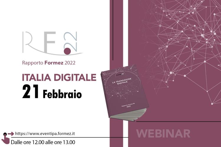 Il 21 febbario si terrà il webinar Italia digitale. Si tratta del primo appuntamento dei 4 eventi, organizzati dal Centro studi e attività internazionali di Formez PA, legati all’approfondimento del Rapporto Formez PA 2022, presentato il 2 febbraio 2023 alla stampa.