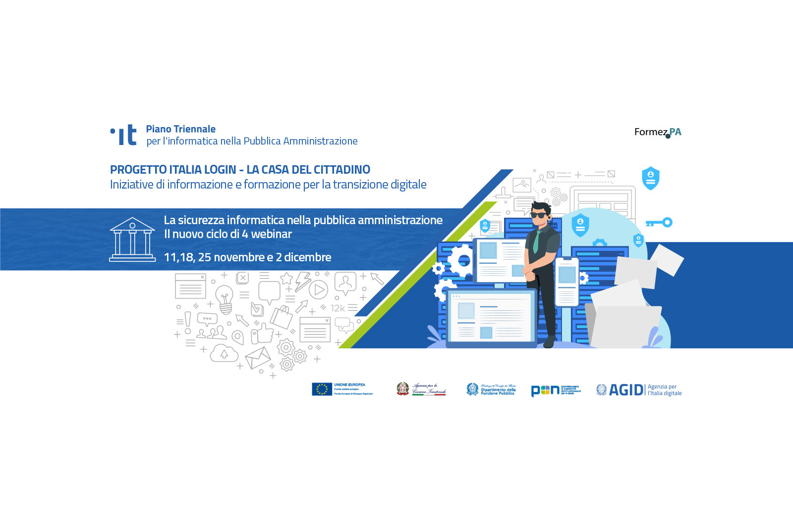 Avviato l'11 novembre, il ciclo di webinar di approfondimento sul tema della sicurezza informatica nella PA, ogni giovedì quattro appuntamenti formativi organizzati da AgID e Formez PA nell’ambito Linea 1 – Gestione della trasformazione digitale del progetto Informazione e formazione per la transizione digitale Italia Login – la casa del cittadino. L'iniziativa formativa approfondisce il delicato tema della sicurezza dei servizi digitali della Pubblica Amministrazione: un'esigenza sempre più importante per garantire l’integrità e la riservatezza delle informazioni del sistema informativo pubblico. Partendo dal Piano Triennale per l’Informatica nella PA, gli incontri offriranno una panoramica teorica e pratica sulle linee guida ed i tool più efficaci per innalzare il livello di sicurezza informatica e contrastare le potenziali minacce esterne.