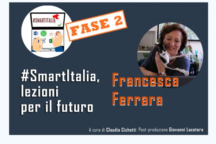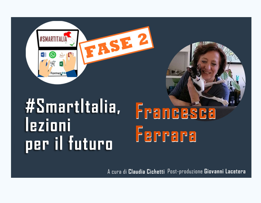 #Smartitalia, lezioni per il futuro fase 2 incontra oggi Francesca Ferrara di Formez PA. Oggi inauguriamo una nuova fase della nostra rubrica in cui, oltre raccontare il Formez che non si ferma, descriveremo una nuova normalità, visto che ormai ci è chiaro che abbiamo modificato le nostre attivita, i nostri progetti pur di andare avanti e andare incontro alle nostre esigenze e alle esigenze dei nostri stake holder. Francesca Ferrara ci racconta il suo lavoro e come questa nuova dimensione di lavoro a distanza abbia delle ripercussioni sia all'interno del nostro istituto che all'esterno nel rapporo con le PA. "Abbiamo capito che c'era poco smart nel lavoro tradizionale che ci obbligava a fare le stesse cose; ora abbiamo scoperto che a distanza si può fare e per molti versi è più intelligente perché dà più tempo alla riflessione. Per quanto riguarda l'esterno, molti colleghi hanno individuato, come noi, attivita di formazione a distanza". Una grossa quota anche di affiancamento alle PA puo essere fatta infatti a distanza, facendo tesoro di questa esperienza, ad esempio tramite l'attivazione di alcuni servizi tra cui l'help desk o le attività di risposta a quesiti, anche se, come ci dice la stessa Francesca Ferrara "certo non tutto si può fare". Proprio i Centri di competenza regionali per la semplificazione possono essere una esperienza utile per l'attivazione delle politiche per la "ricostruizione" dopo l'emergenza sanitaria e la crisi economica che ne deriverà. Questi centri di competenza sono dei luoghi dove si scambiano esperienze, dove si apprende sul lavoro, si apprende facendo delle cose. Tra le attività a distanza che sono state realizzate c'è il webinar per gli sportelli unici e attivita produttive ed edilizia proprio sull'emergenza Covid 19 che ha portato, attraverso i decreti, a dire che i termini dei procedimenti sono sospesi per un certo lasso di tempo.