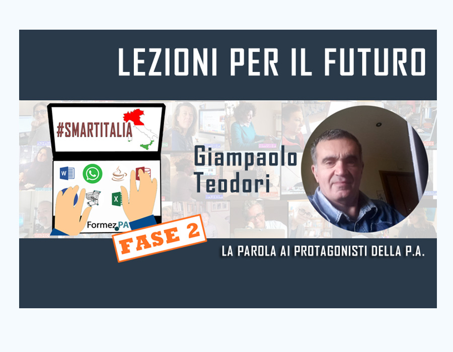 # SmartItalia Lezioni per il Futuro intervista Gianpaolo Teodori, responsabile di un progetto Open Data con la Regione Calabria. Con Teodori riflettiamo su che cosa significhi lavorare da remoto e quali sono, a suo parere, le lezioni positive da apprendere, derivanti dalle attività realizzate in questo periodo di emergenza.