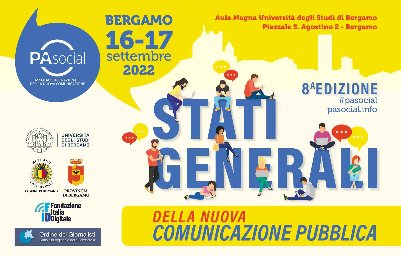 Sarà Bergamo a ospitare l’ottava edizione degli Stati Generali della nuova comunicazione pubblica in programma il 16 e 17 settembre 2022 presso l’Aula Magna dell’Università di Bergamo. Una due giorni per descrivere come sta cambiando la comunicazione pubblica e il lavoro quotidiano di comunicatori, giornalisti e manager della comunicazione digitale.